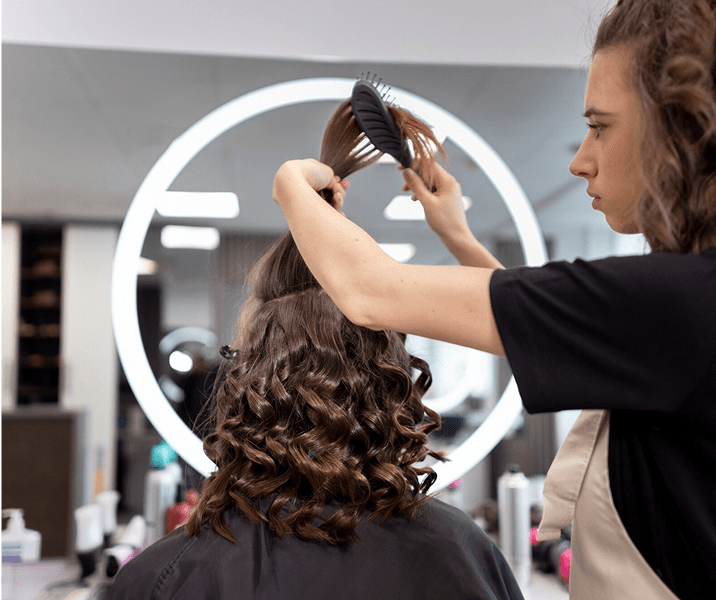 Moldeado del cabello con efecto duradero para lograr rizos u ondas definidas.